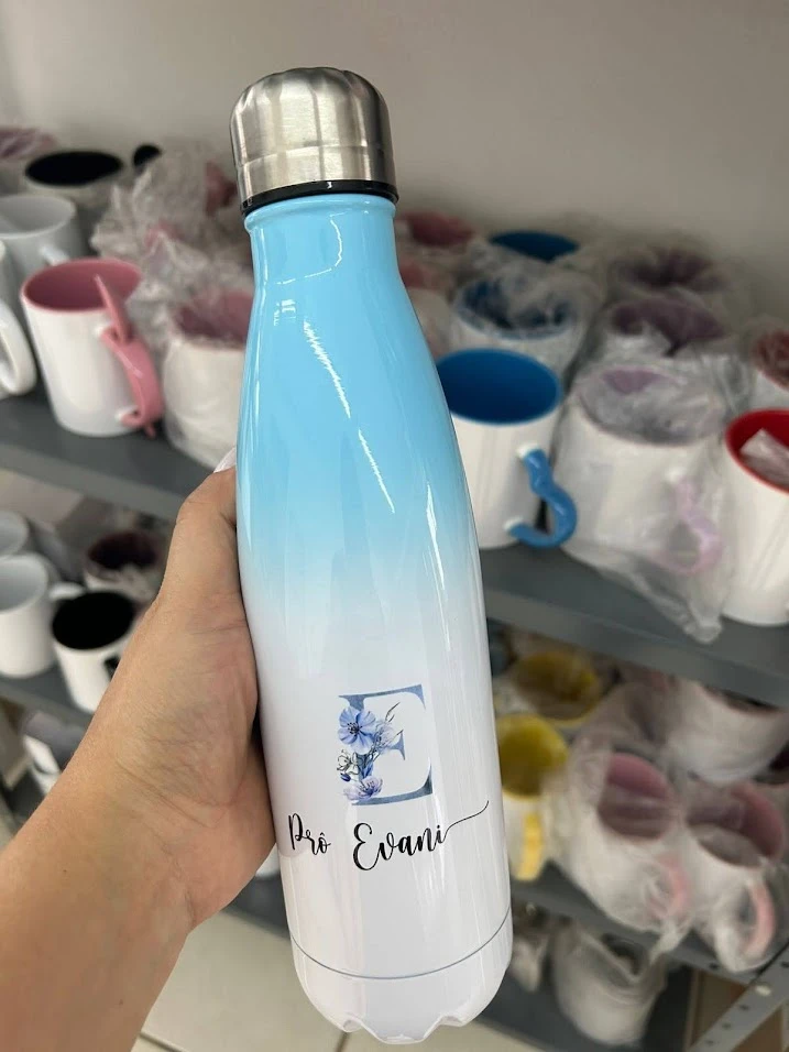 Garrafa Térmica Estilo Boliche 500ml Degradê Azul Personalizada