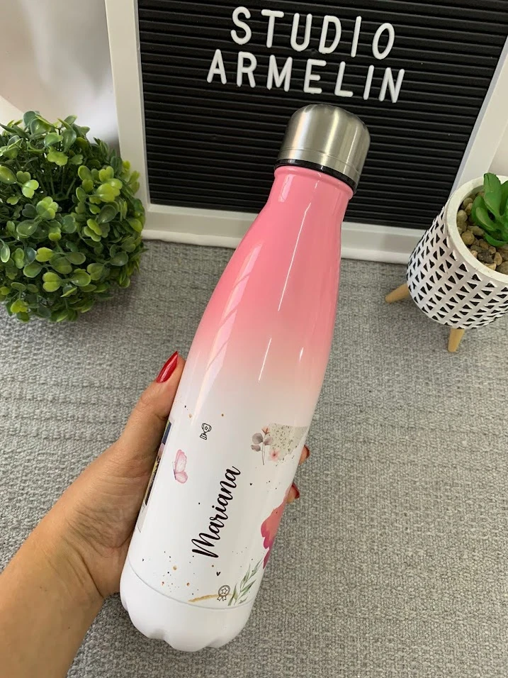 Garrafa Térmica Estilo Boliche 500ml Degradê Rosa Personalizada